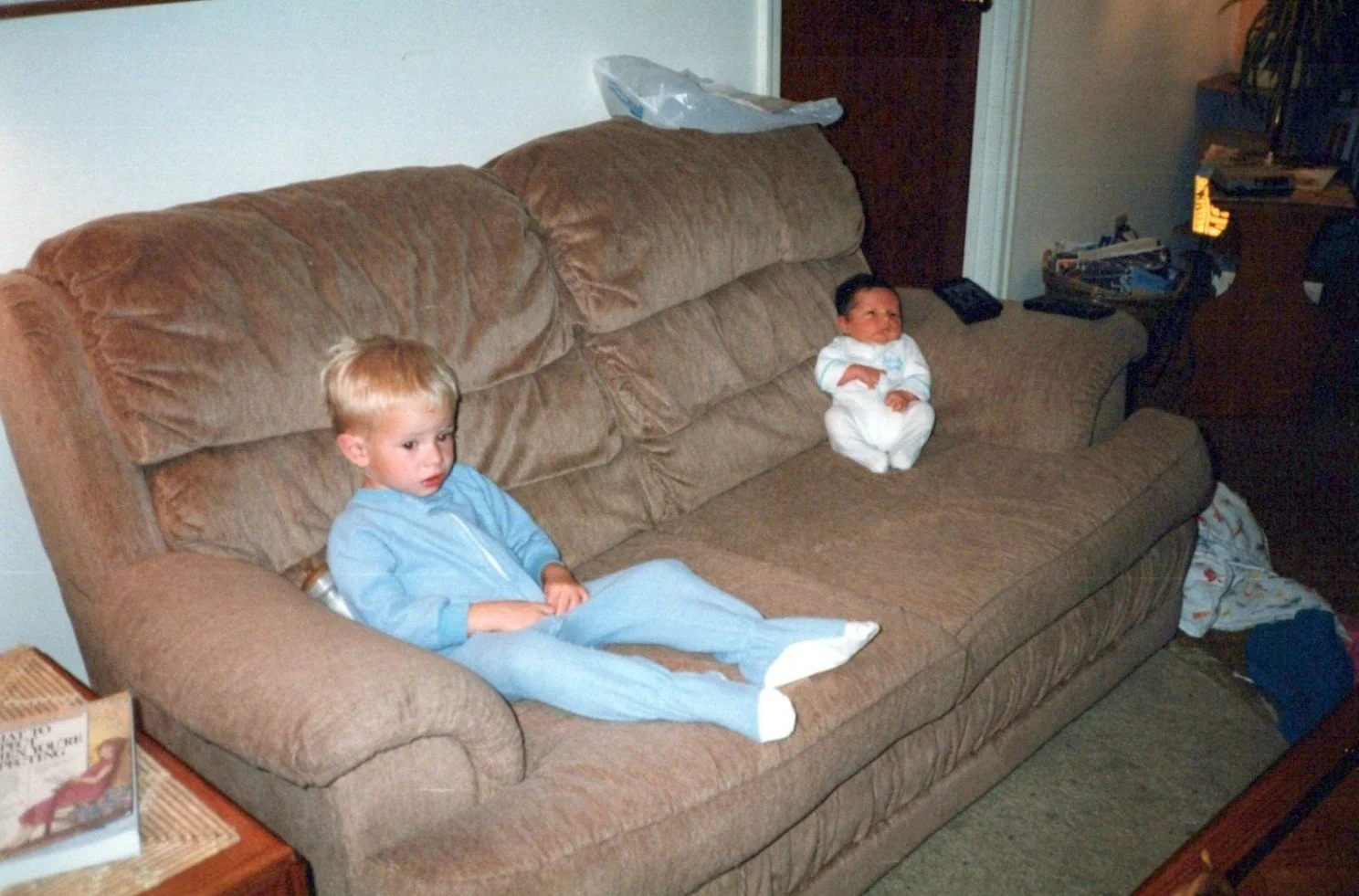 Kyle and I are three years apart. When he was little, he used to mumble. And it was me who translated for him. He didn’t walk for a long time……because I drug him around as a baby to play with me and my friends. This is when we forged an unbreakable bond.